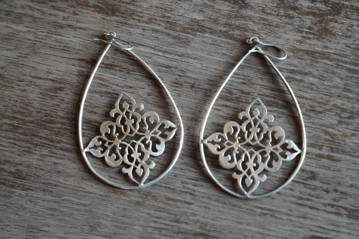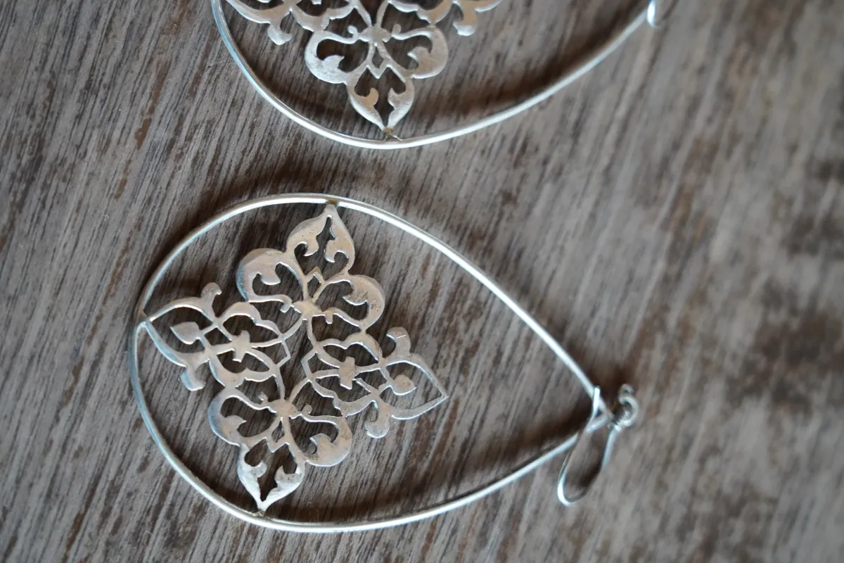Ręcznie wykonane srebrne kolczyki pochodzące z Teheranu, inspirowane lokalnym rzemiosłem i perską estetyką.