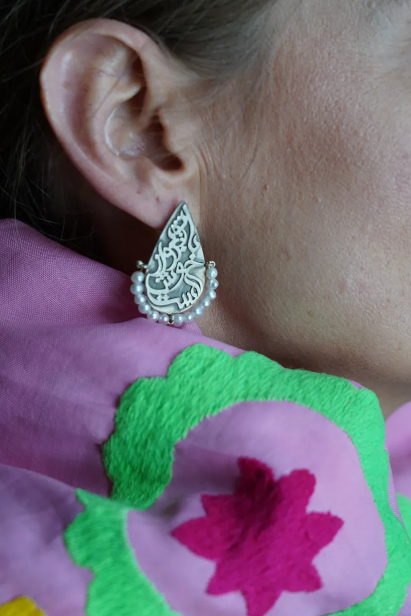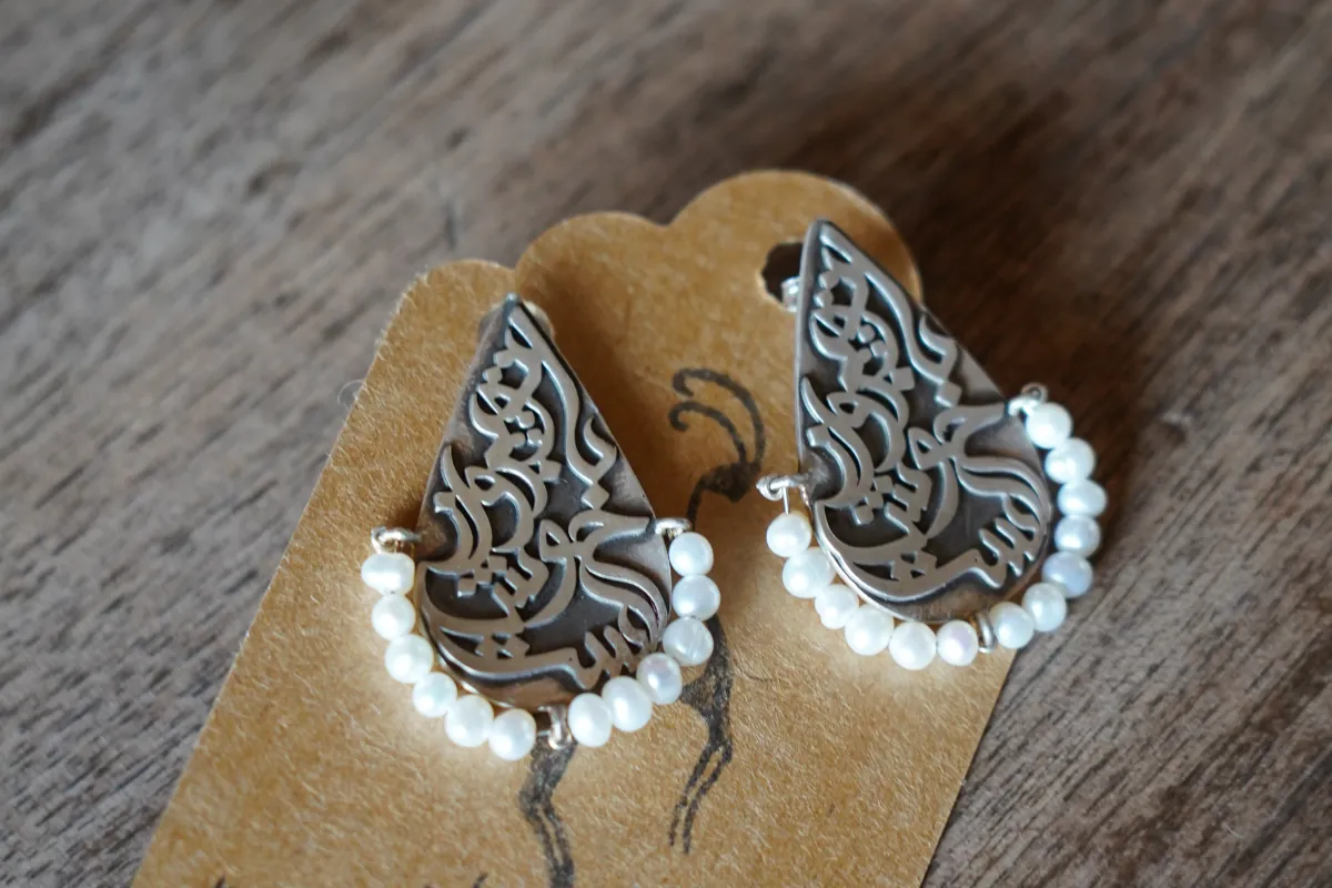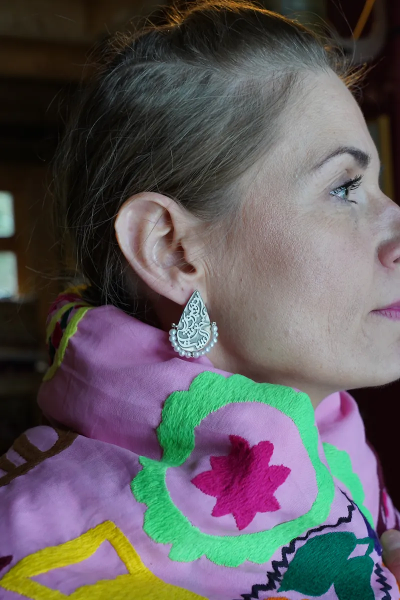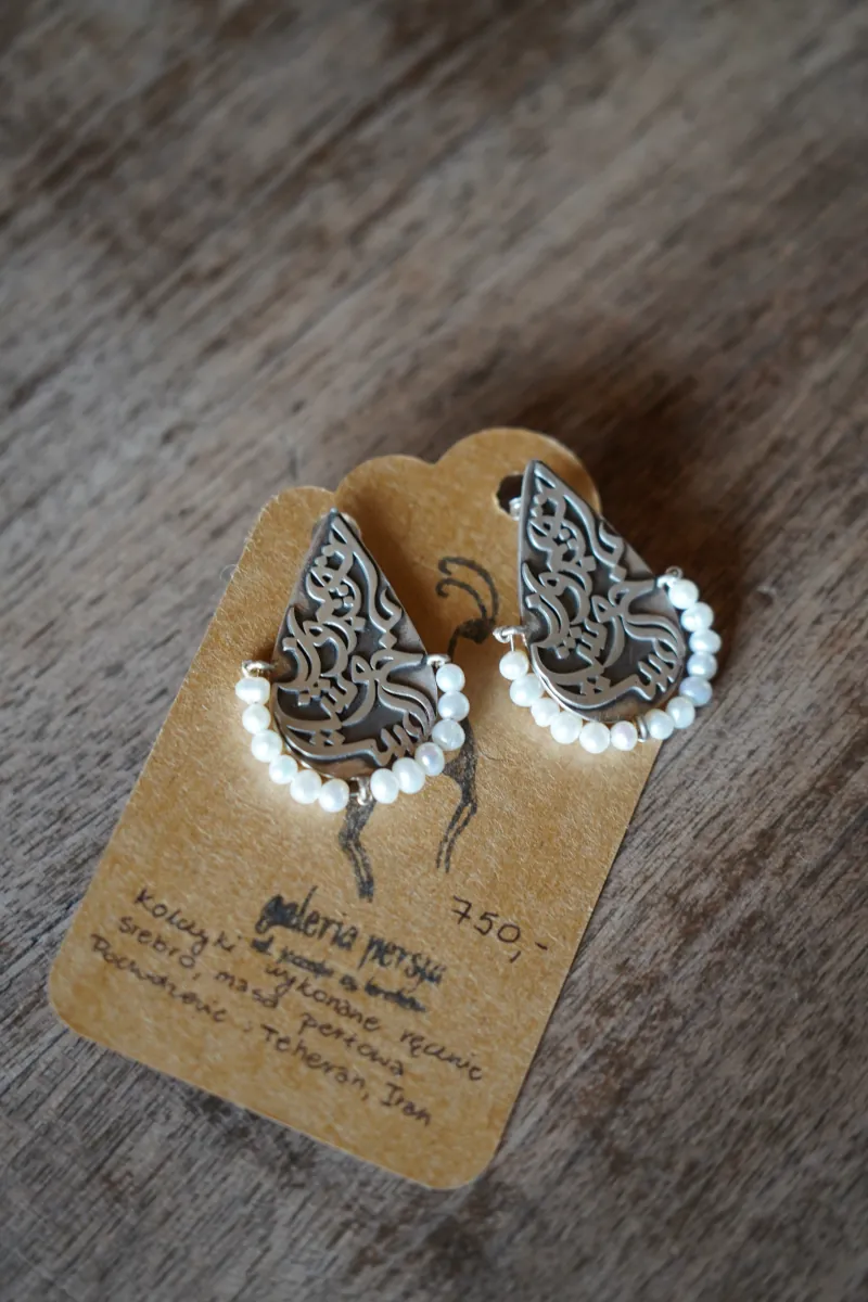 Unikatowe kolczyki wykonane ręcznie ze srebra i masy perłowej przez rzemieślników z Teheranu.