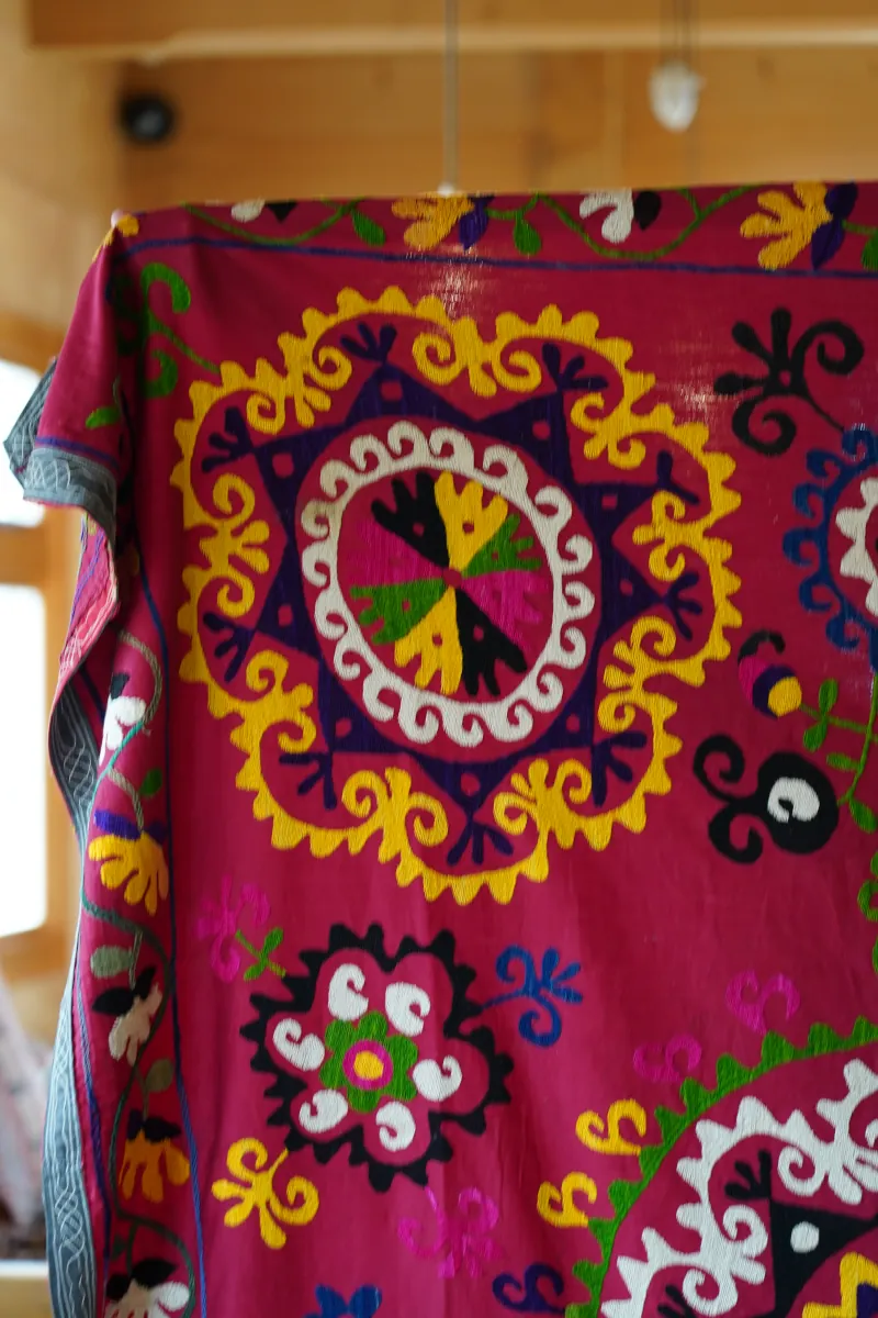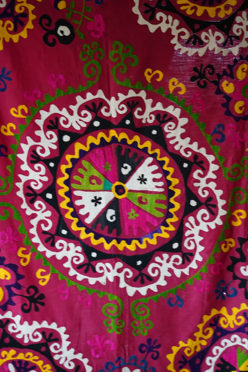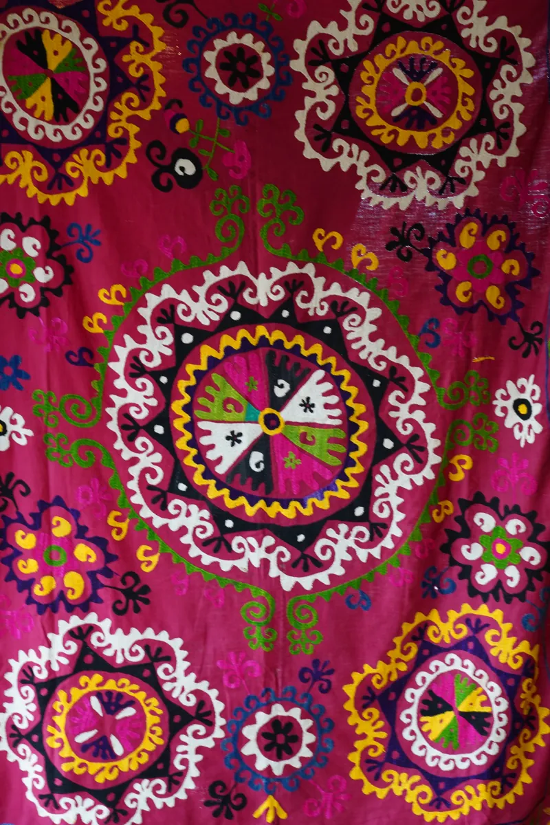 “Suzani” – tadżycka tkanina haftowana ręcznie.
